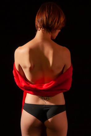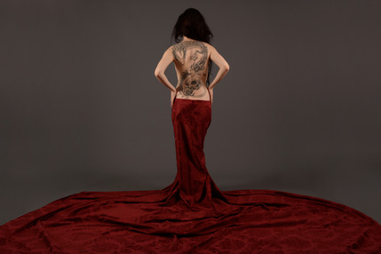 #coffin #kanji #pale #paleskin #red #redandblack #redhead #scarf #tattoos #tribal #wings #tattooedmodel