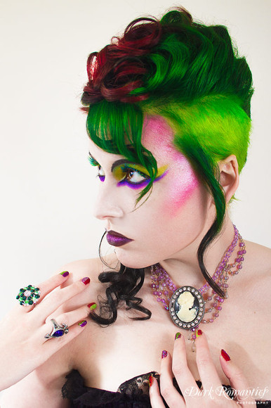 #makeup #pink #purple #red #tattoos #white #wildhair #tattoomodel #piercings