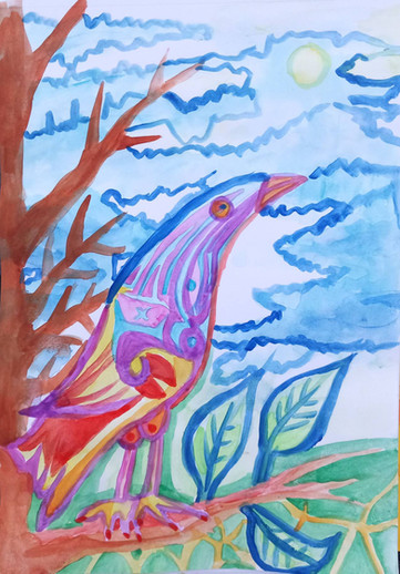 Acrylic, ink, graphite, colored pencils, collage - Mixed media on 18x24" mixed media paper.“Birds are a miracle because they prove to us there is a finer, simpler state of being which we may strive to attain.” -Douglas Coupland