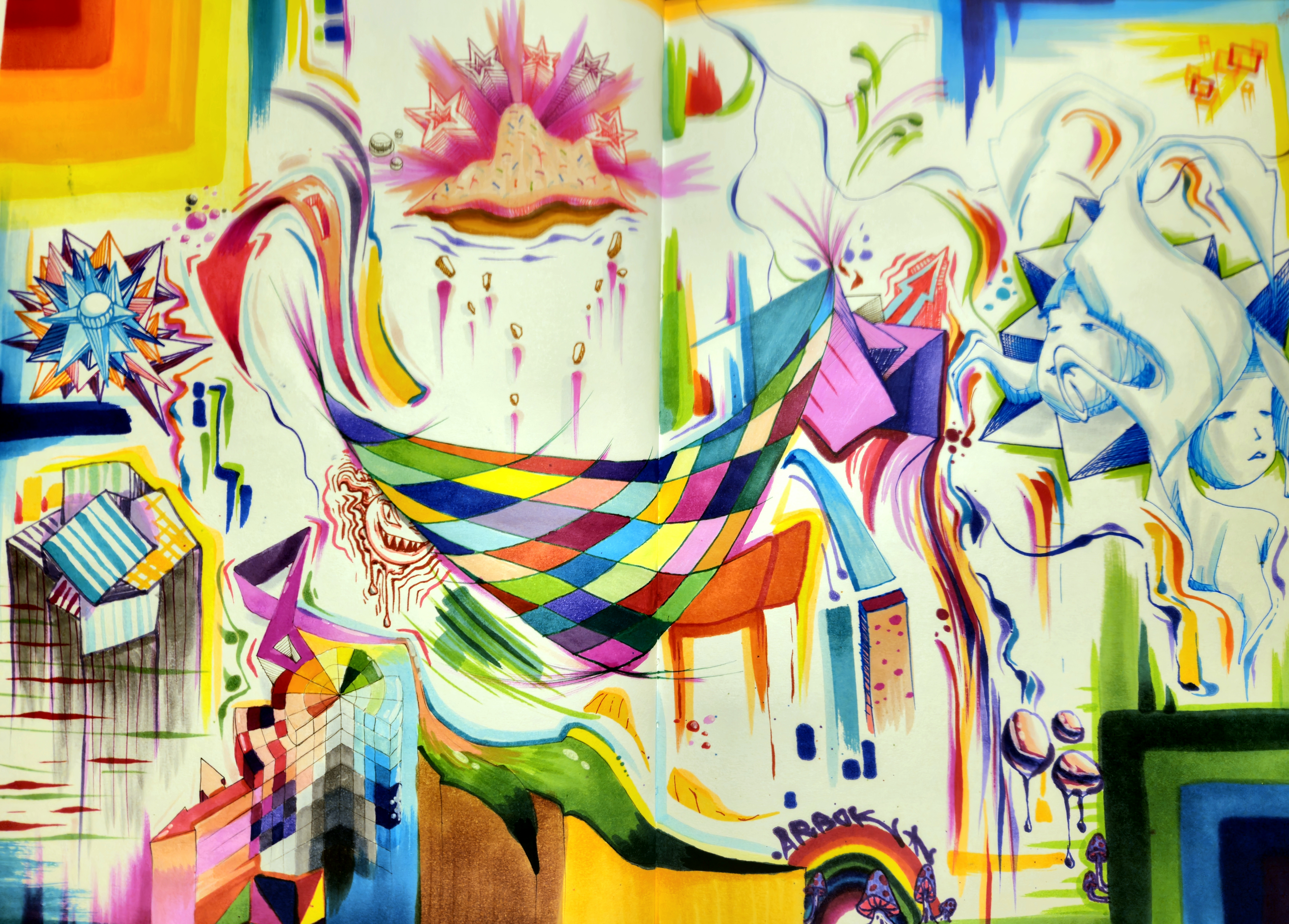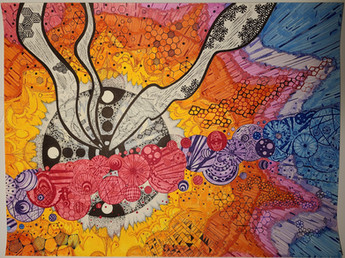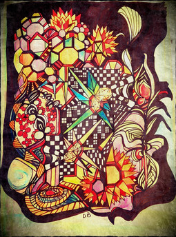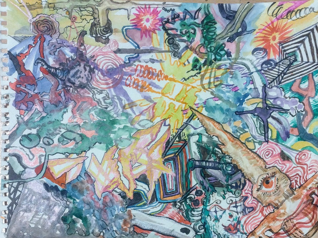 Acrylic, ink, graphite, colored pencils, collage - Mixed media on 12x18" watercolor paper.Related content