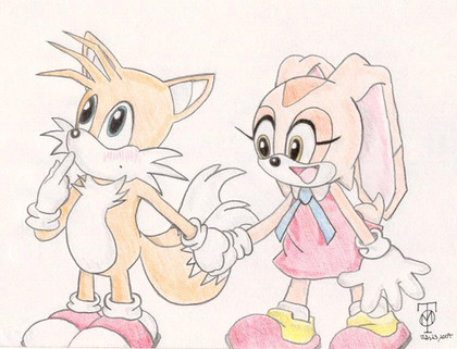 Cream is always willing to help and Tails must be happy to have a helping hand around. Even if the most she can probably do is pass tools to him. *Hugs Cream anyway* I like how you've drawn their faces.