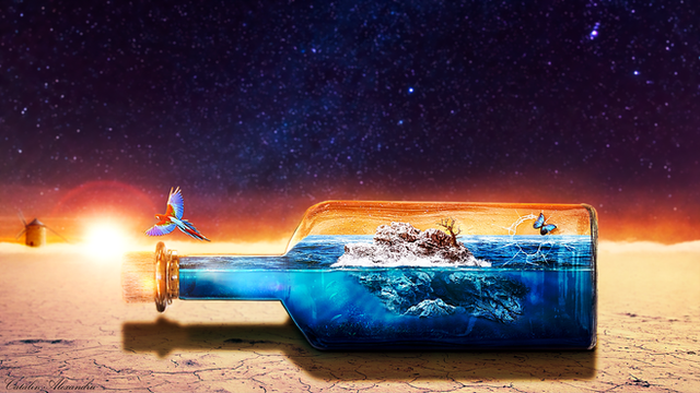 This was fun working on, but at one point I didn't know what I was going to put inside of the bottle. I even said to my self, "maybe I should put an SOS note in it?" Haha I overthink too much. Well, the tree was a great idea, very enchanting. Hope you guys like itCredits to the stock owners: