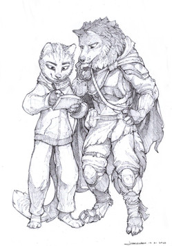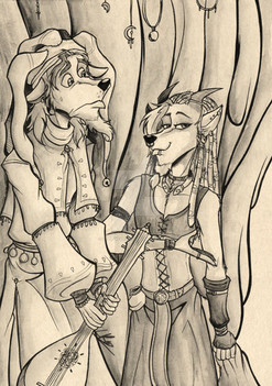 Look who’s gonna have a cameo in my story. Not many of you might remember the few posts my dnd characters, but here are Lamonte and Helayna redesigned for ‘descendents of Kaldyrim’s universe.Oooh I’m so excited for their story X3