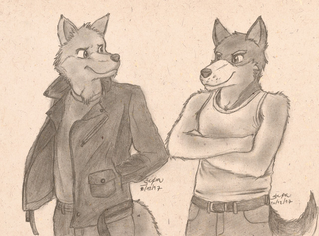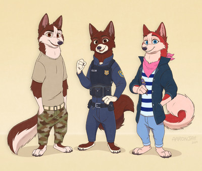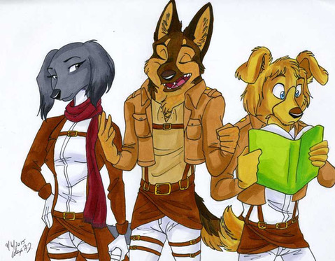 Some concept/dress code art for a little side project with these puppies. Kaleb, Ellie and Alpha - too big to fit on a single A4 paper…of course!Related content