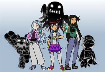 Credit to jsketch12 (on Twitter) for the inspiration: a male, non-binary and female Pokemon trainer.Related content