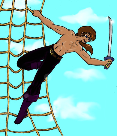 Yes, I am a Captain Hook fangirl (Fox's Peter Pan and the Pirates version, original novel and script play version, recent movie version... NOT Disney version. Never Disney version. This picture is of the Fox version, for those who don't recognize it). I even have a Mary Sue for him, a picture of which will be making its appearance here within the next few days. But anyway, lately I've noticed that there have been lots of thoughtful or angsty Hook pictures, several gentleman Hook pictures, a number of romantic Hook pictures, a few funny Hook pictures, and even a couple My Little Hook pictures. All of these are fitting for this incredibly multifaceted character (well, except maybe the My Little Hook ones), but I felt the world needed more pictures of that side of Hook that really gets us fangirls squeeling (well, me, anyway): the psychotic, murderous, unstoppable force of nature Hook. Beyond that, this is also something of a teaser for an upcoming scene in my fic, Where Dreams Come True (yes, I still work on that from time to time). Nightmares! Weee! Guess who the little eyes are in the background! The green teeth should be obvious.