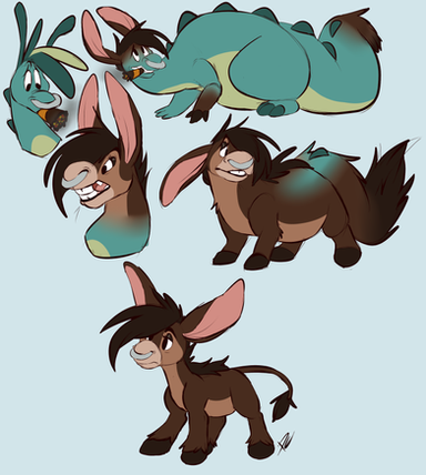Here’s a collection of random drawings of my jackalope Blue! These were just a few sketches that I’ve had in my to-do folder because I wanted to ink and color them and found some time tonight. The top 2 are just a couple baby Blue drawings. The third one is just a pose I was playing around with. The fourth one is just Blue’s face. I originally drew this when I had multiple people tell me that they didn’t realize that Blue had 2 different color eyes, so I was going to color this for reference (but then forgot about it for a long time, haha). I think I might upload his face to my Redbubble store later because it could make a cool sticker or tee shirt design. ^_^