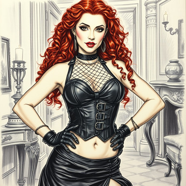 #ai #alternative #artistic #beauty #cartoon #corset #goth #leather #punk #redhair #redhead #skirt #aiart #redhairedgirl