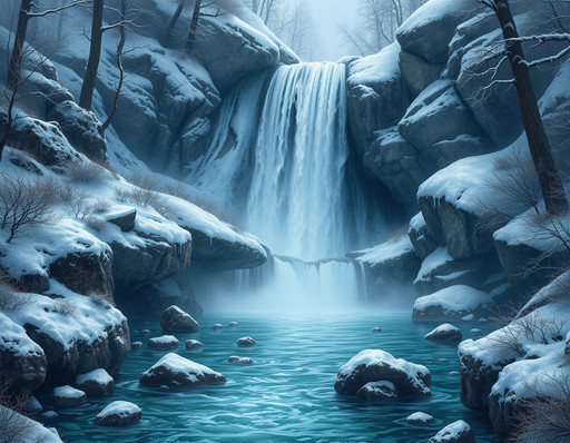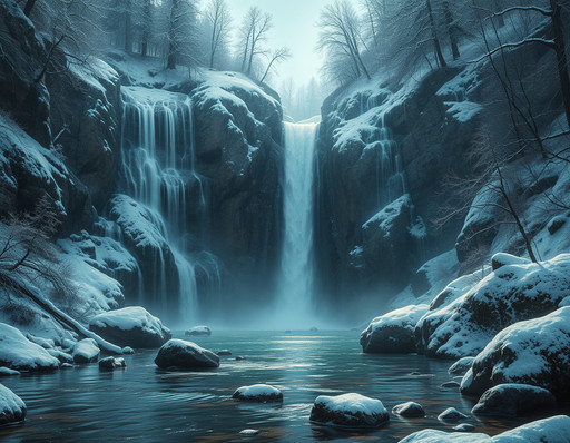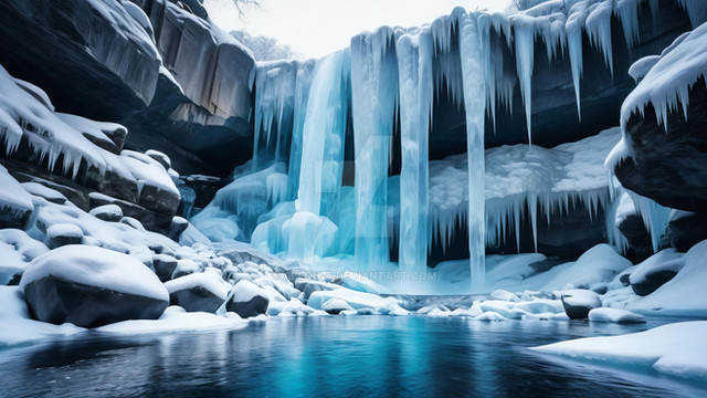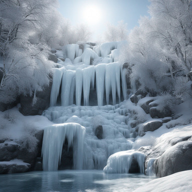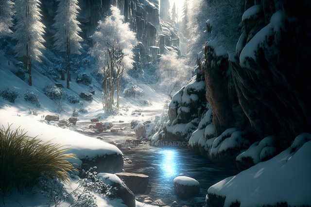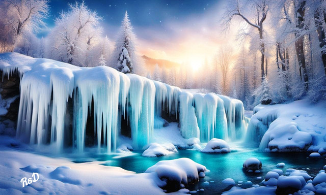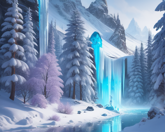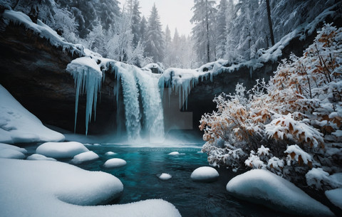 #ai #beautiful #blue #cold #dream #frozen #ice #landscape #mystic #nature #river #snow #sunshine #water #waterfall #winter #winterlandscape