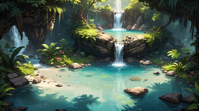 #beautiful #cartoon #cartoonstyle #cave #clear #fanart #foilage #forest #hidden #hiddenlake #jungle #lake #landscape #moss #painting #photoshop #plants #rocks #rose #secret #serene #spa #trees #tutorial #water #watercolor #aiart #poetryai