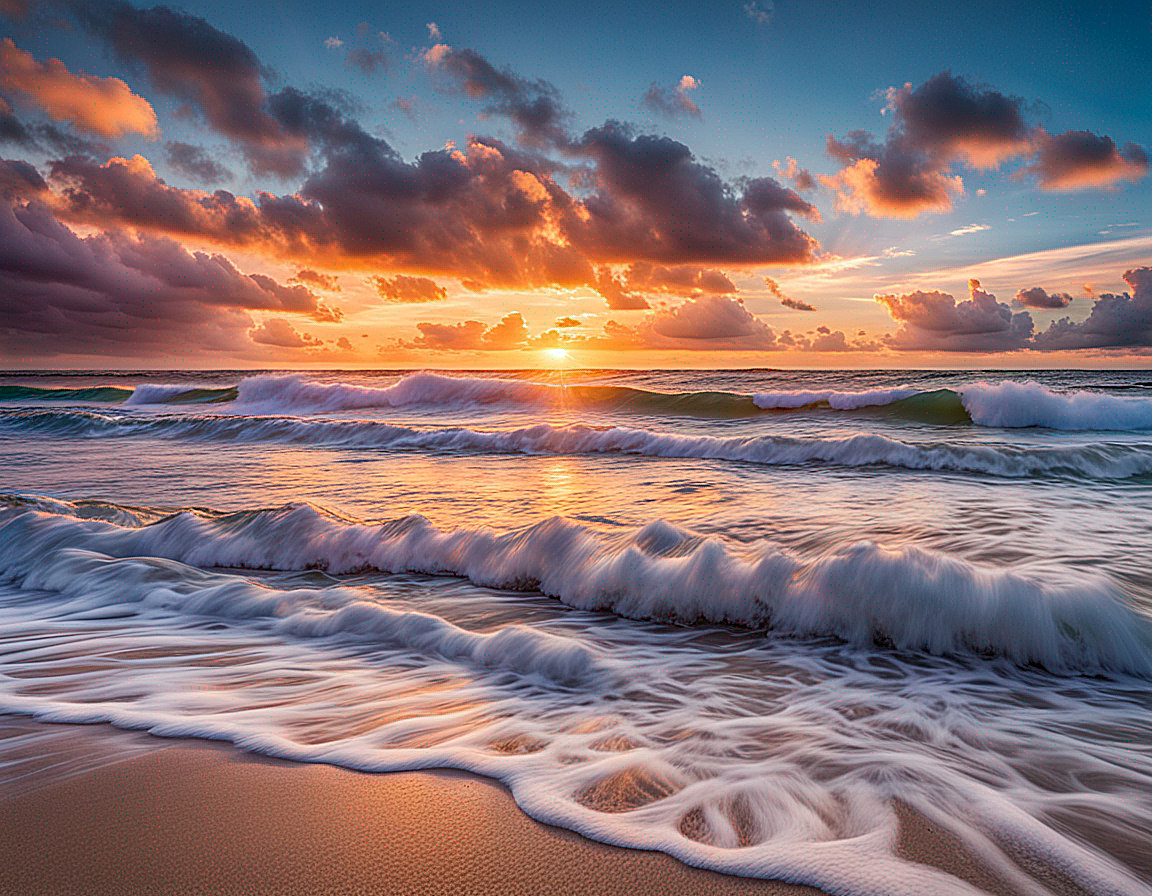 als450 - Sunset over ocean with waves crashing on shore. [🤖]