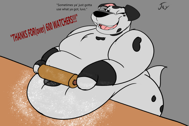 #dog #anthro #apron #bbw #dalmatian #digitalart #fat #female #oc #rearview #sponge #101dalmatianstreet