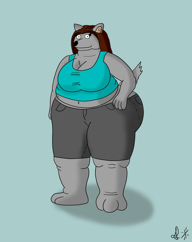 #anthro #bbw #brunette #deej #digitalart #fat #female #human #oc #redhead #sweater #wolf