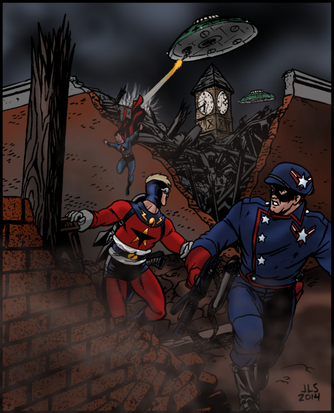 Nice merging of the Cyborg and human versions. Fantastic lines and an excellent contrast between the hero in vivid color and the bleak villanous greys. I like it a lot.