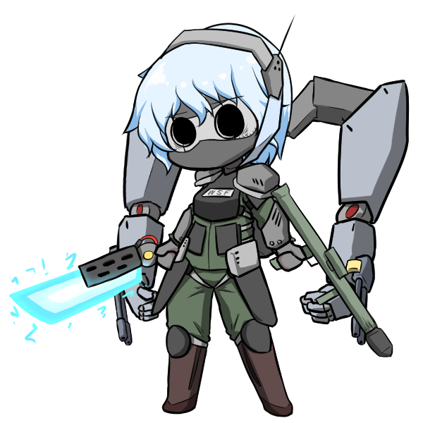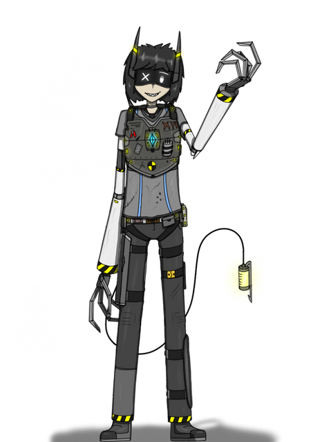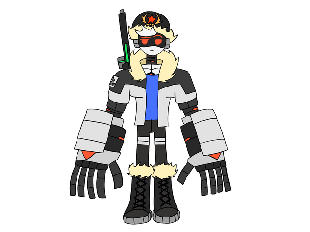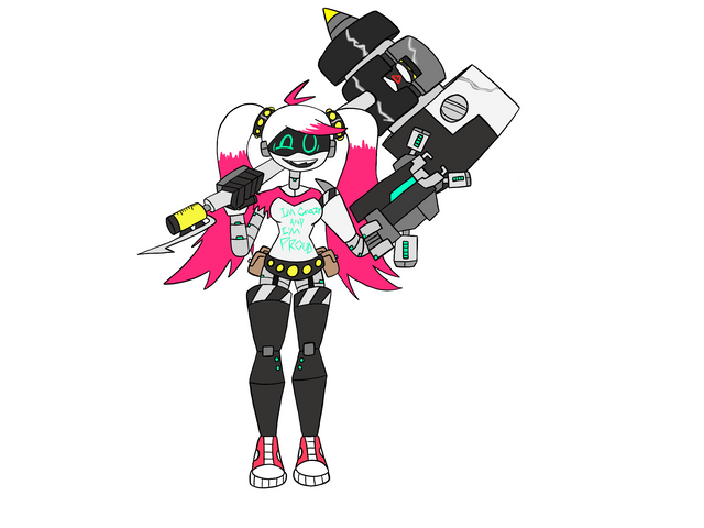 bio: a female standard drone who’s an inventor with weapons and gadgets.she's a member of the frost wolf pack and She spends her time kidnapping murder drones or hunter drones to test her weapons on them. Look how proud she is that she built those guns to test it on the murder drones or hunter drones for later. She’s also dating with Donnie.