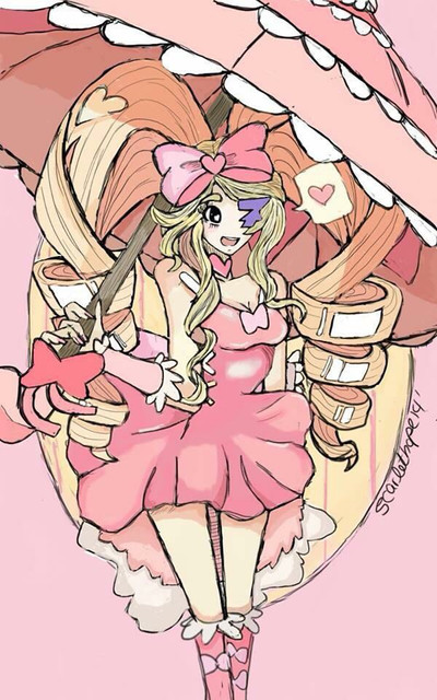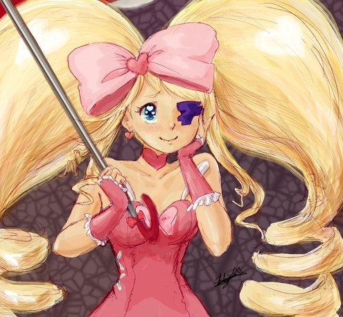 nui from kill la killi really like her design, she's so cute if you ignore the fact shes a psychopath. not sure about selling as a poster for overload since iunno if she is that popular as a character ; o ; probs survey people at some point hehe ^ - ^
