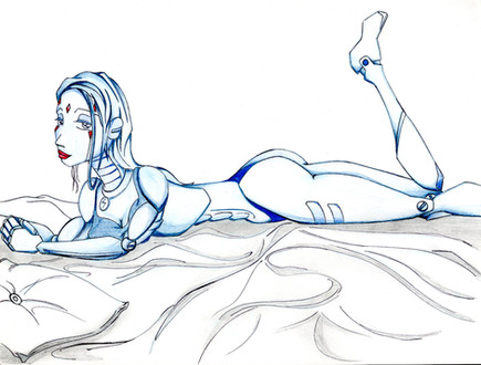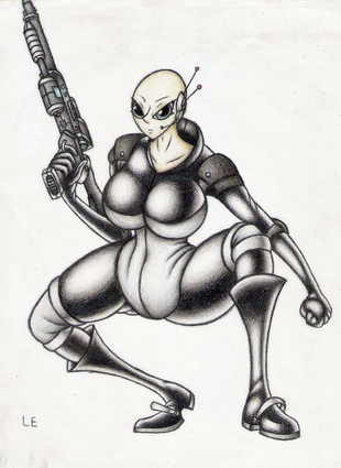 The model here was my girlfriend ex girlfriend Della, and yes, she is a robotic assassin.