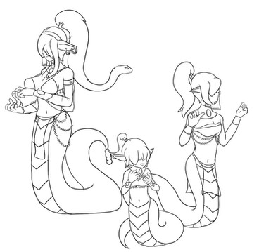 Just like there's no rulebook for drawin catgirls, some people give them fur, some people don't. Some people give them cat eyes, whiskers and cat noses, and some people don't. Since the naga is a mythical being to begin with, or in other words "imaginary" i can dar them however I like.