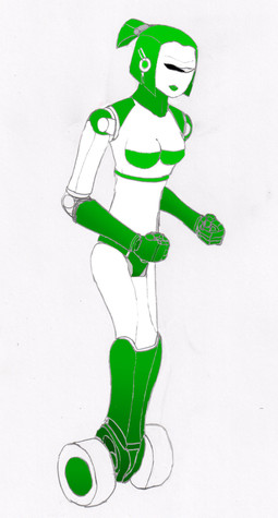 whoa, that is a one pretty cool mech chick! heheh, loving the wheels here. Awesomness!