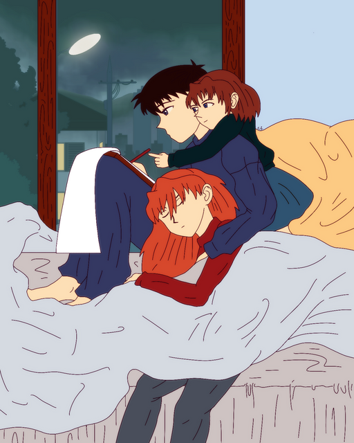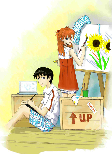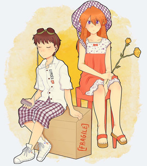 #happy #kenken #asukaevangelion #asukalangley #asukalangleysoryu #backtoback #evangelion #kensukeaida #legs #longhair #neongenesisevangelion #sitting #rebuildofevangelion #asukalangleyshikinami #asukakenken #asukaandkensuke #kensukeandasuka