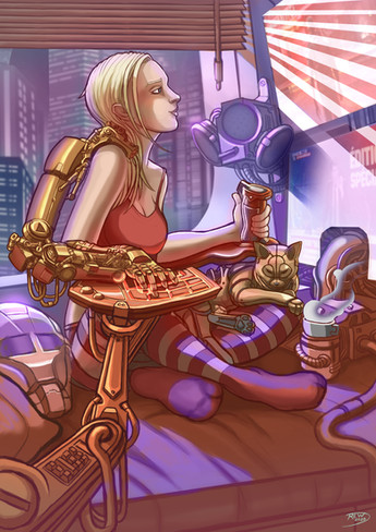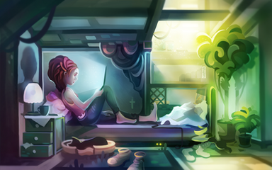 #balloon #bed #bedroom #blueprint #digital #dream #dreaming #fantasy #girl #ideas #illustration #machinery #photoshop #reading #scifi #surreal #wall #window #layingonbed