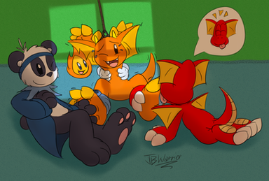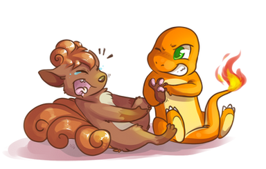 The picture above is an old idea that was brought up from a conversation between Enigma and Tan, one I had begun drawing long ago aaaaaaand needed an update (and actually being finished, for once, unlike other old pictures I begun) so... this is the result. And I like it. I think there can never be enough Vulpix tickles, and this one in particular was just askingΒ for it, so... let's just say a certain shadow helped our little Ziggy have some fun. right?