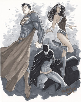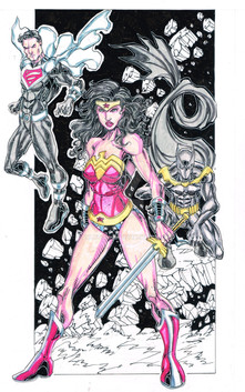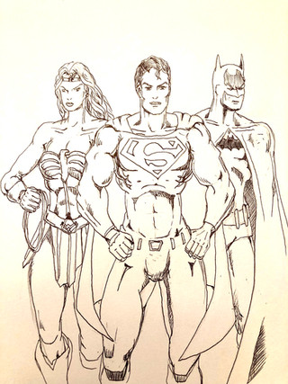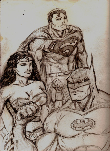 I can't seem to draw Wonder Woman the way I want to, I think I need to work on hair.This didn't really come out the way I had it in my head. Superman's streak across the page didn't come out the way I wanted it to.