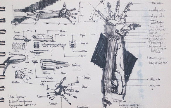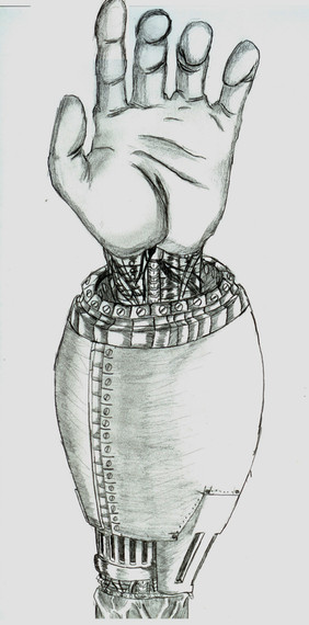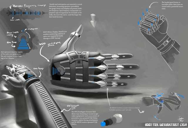 Well put Erics right hand which this one is and add on Seven's left handed borg exo-graft(?) stuff and you get a crappy proto to which this very well designed and colored drawing can take reference to.