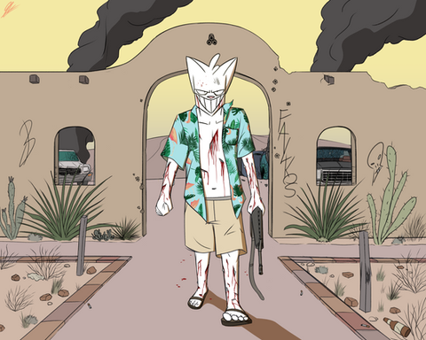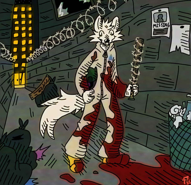 An old digital art request I made back in 2018 for a good pal of mine, , who had requested that I draw his rabbit character, Jen. I decided to go above and beyond by drawing her out all on her lonesome in the back of a Ghetto after dark, kicking back against a wall as she enjoys a quiet smoke, surrounded by the vulgarity-adorned wall behind her. Not that Jen gives a damn, though. Clearly, this stoic chick can handle herself quite well against the elements of the streets.