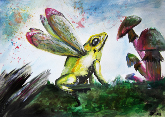 Even better with color! I like how the frog wings turned out!