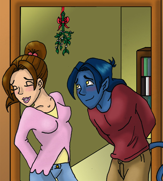 Kitty is next to Kurt, not really minding the switch. S/he likey what s/he sees.