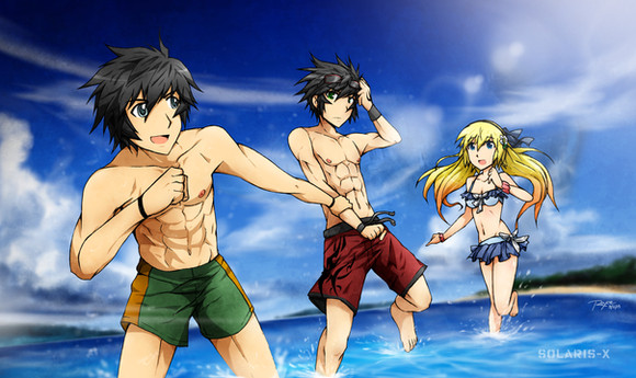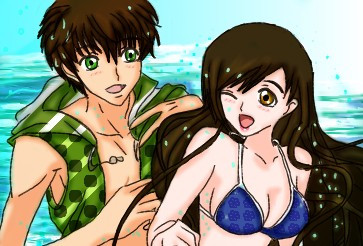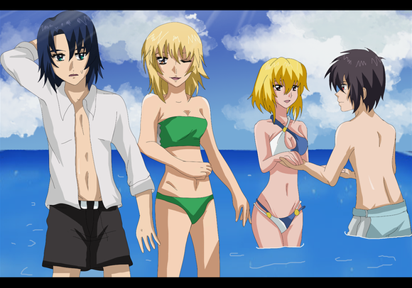 Basically, I followed the original scan but I made a lot of modification, especially Cagalli's bathing suit, Athrun's shorts. The rest are the same. The original scan contained Lacus, but I decided to remove her. In this wallpaper, I wanted to portray my three favorite characters of GS.