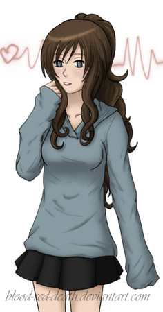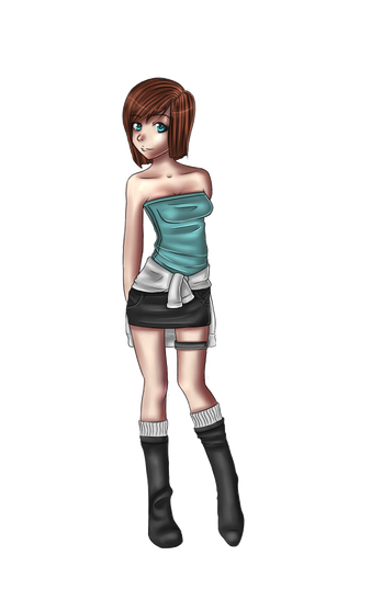 I wanted her to have a longer skirt, it goes to about her knees with 1 slit on the right side. I was playing around with colors and I'm not sure if these colors are going to stay. :/ I'll have to think about it, I was also thinking of a purple so who knows. I do like the lighter skirt though...there I go rambling. XD