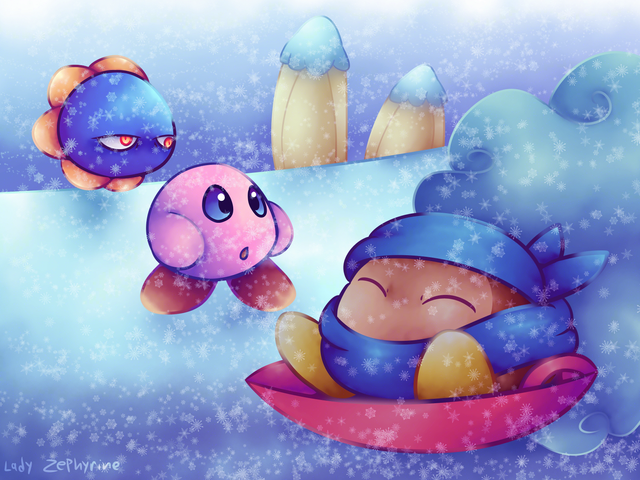 You've captured the blizzard look quite well,it's very impressive.Also,I love Kirby's expression noticing that Meta Knight and King Dedede trying to keep warm.