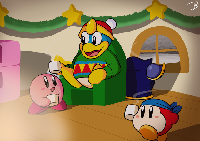 Well you made it perfect! King Dedede and Meta Knight look like they're freezing and Kirby simply doesn't care about the cold. It's also very CUTE!