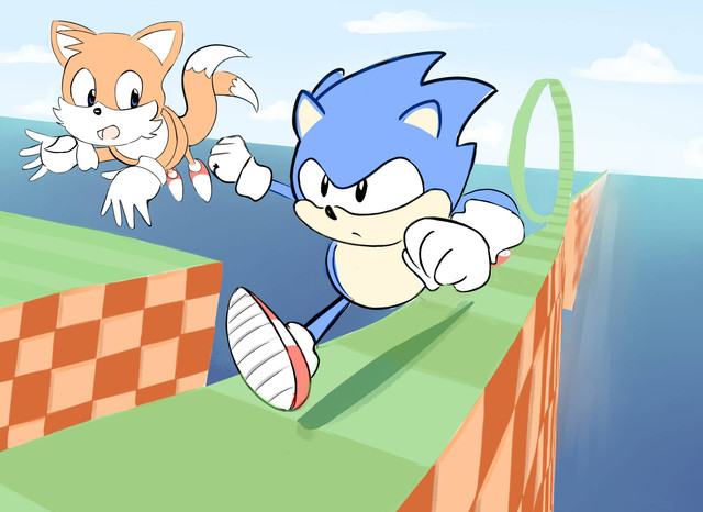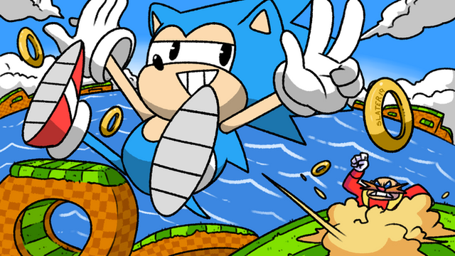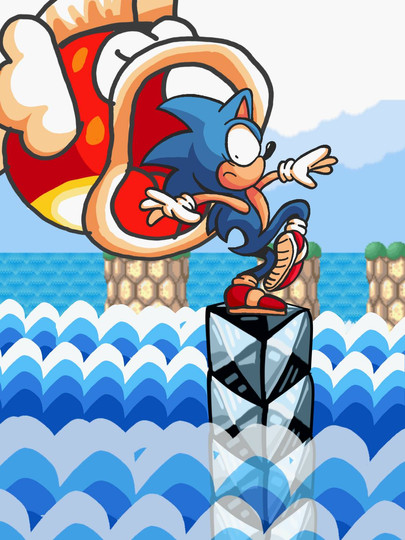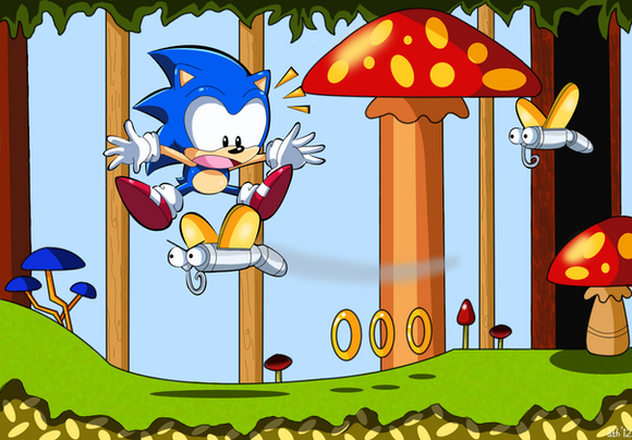 Brillaint work man, really like the detail and colouring and sonic's oh beep incidental expression is priceless (one he usually uses when he's about to die), better get looking for them rings in a sec sonic or hope you're not on zero lifes.