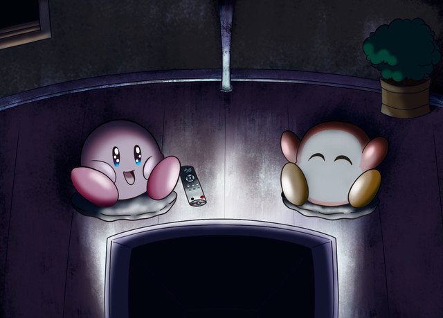 I just love cuddling up on a snowy night with the lights dim!^w^So it was a snowy night in Dream Land and Kirby was up late near the fire place watching the final season of,"The Sopranos" on his big ass, HD, widescreen TV.BD Kirby was very egar and curious to see the ending everyone's been complaining about, and boy is he in for a surprize!