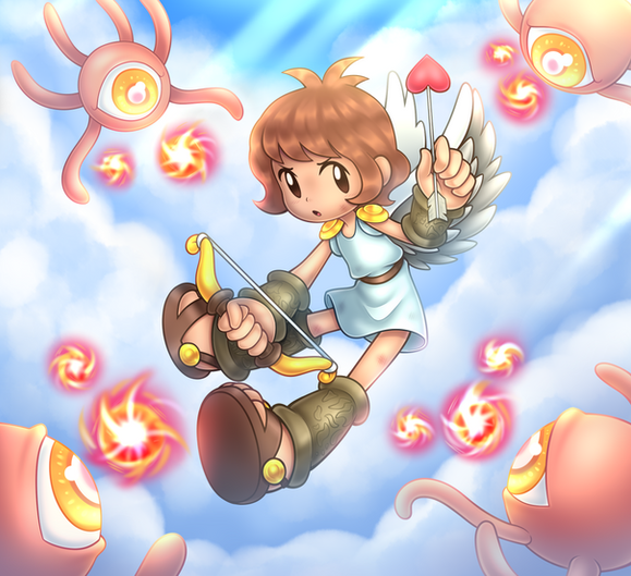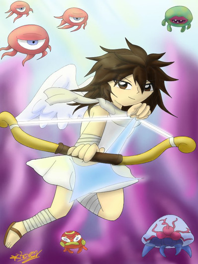 I've been wanting to do some Kid Icarus fanart for a while now. I made Pit's design based on that one scene in the animated short,'Medusa's Revenge.' So it's a mix between his modern design and classic design.(wish he still wore shorts, tho) I tried for more of a downward angle, but I fail at perspective.XPThe original Kid Icarus is ball bustingly hard btw. I was only able to make it so far thanks to savestates. It's weird, the games starts out super hard and unforgiving, but once you reach the later levels, they're not so bad. Part of it is probably due to you getting bow and health upgrades. But the challenges of platforming are still there.