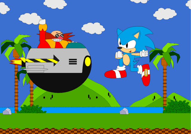 Somthin' I whiped up a while ago. I like how Sonic and Dr.Robotnik turned out. But the Green Hill Zone ground BG not so much.Sonic characters © SEGA