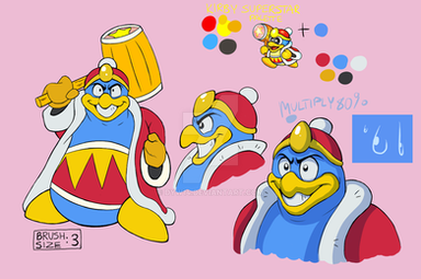 This is a diagram pointing out specific details on all the major designs King Dedede has had in the past. Hopefully, this will help when you want to draw a specific design! I tried drawing them as close as I could to get them right. But I don't think my crappy art style did them justice..Which design is your favorite? For me, it has to be Super Star/Modern. I love the choice of colors, and the tan shirt really makes him stand out!