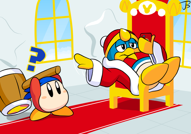 One of my pet peeves though, is when people draw Dedede, they color the top of his belly tan, but under the belt he's blue. Like, where's his pants?XD