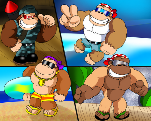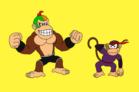 Ft. Donkey Kong Jr. and his pink doppleganger from DK Jr. Math! I call him Smarty Kong.Jr. is the current Donkey Kong's dad. Smarty is his uncle by extension.
