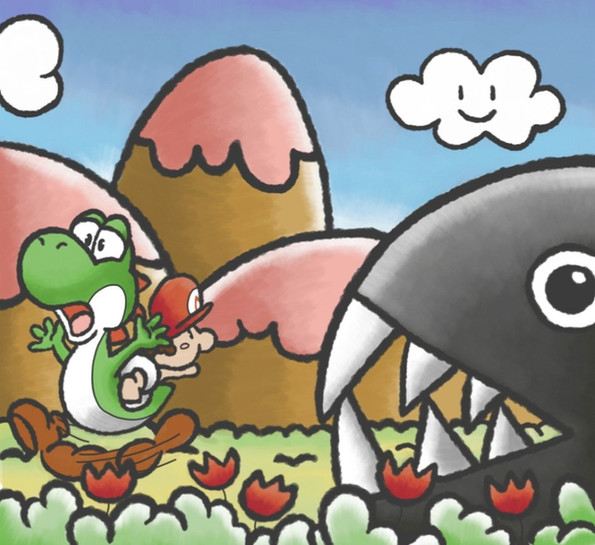 Recently I've been getting into the Mario series. I mean I've been playing the games forever, but I've never actually got really "into" Mario as a series. So I decided to start drawing some fan art. I couldn't really come up with any good settings for pics rather than blank pics with certain characters. So then I just doodled this and I thought,"Why not?". So we have Yoshi having a bit of a rough time with a Chain Chomp, and then Mario comes to save Yoshi. I try to draw Mario in the same style he is in the concept art of the old NES/SNES games. I personally prefer Mario in this style because he's short and chubby. I'm not sure if anyone else has noticed this but, I noticed that in the newer games Mario seems thinner like he lost some weight over the years. I mean compare these two pictures and you'll see what I mean. [link] [link] I find that pretty interseting.Mario characters © Nintendo
