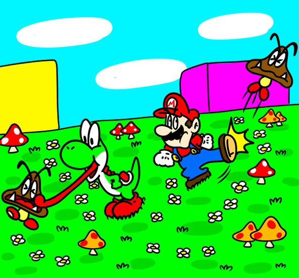 Very cute pic! Your Mario drawing looks like the way Mario looked in the old Super Mario World cartoon show.