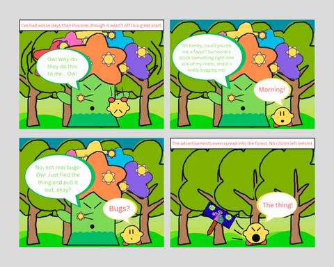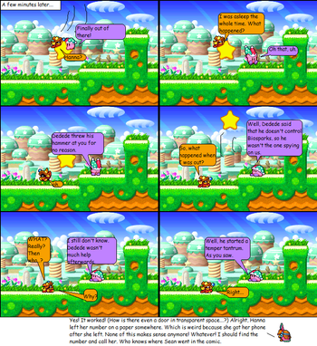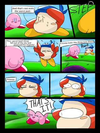 At long last! I've finally finished the first page to the 2nd story/chapter/episode/whatever!XP SOOOOO sorry to you readers for all these years of waiting........both of you..Whispy Woods has had it with Kirby storming into his forest and beating the sap outta him for no reason, and decides to teach him a lessonβ¦