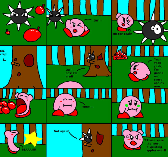 Whispy Woods secedes after failing multiple times to trash Kirby out of house and home himself. Sometimes you just can't beat the status quo!How's this new simplistic art style btw? Is it acceptable?