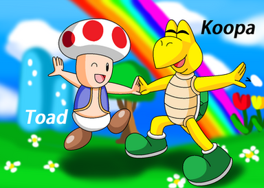 Thought of this last night.A premise for a series taking place way before Mario.(Yoshi's Island) Sunny Toad, a spry, upbeat and adventurous Toad and a younger Kamek, a timid Koopa training to become a Magikoopa. They used to go on adventures around the world all the time in their prime!