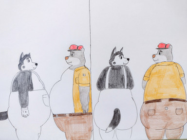 #originalcharacter #dog #beard #beef #behind #belly #big #butt #hairy #moobs #myart #pecs #piercing #rings #rotation #shorts #back #front #nomyoc #diccthicc