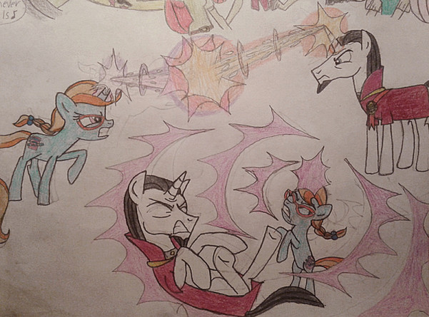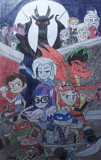 This is one of my favorite songs by BlackGryph0n, Baasik, and Michelle Creber (the voice of Apple Bloom). When I heard the song I imagine Apple Bloom, Black Gryph0n, and Baasik fighting this enemies in the alternate time lines Starlight created, so I drew it.Related content