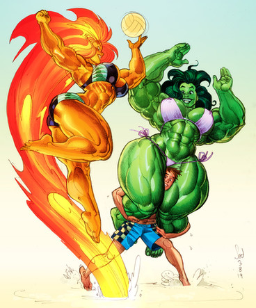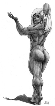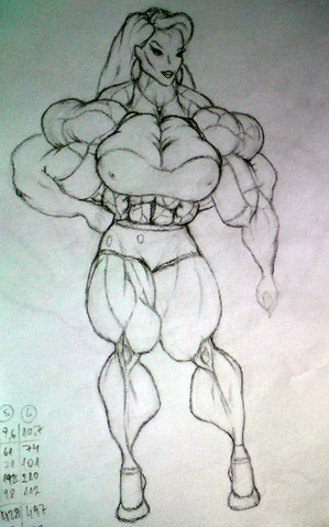 Wow also! Fantastic pic! I don't know how you manage to make such huge and thick leg muscles seem both realistic but also retaining feminine curves, but the results are outstanding! If this is what happens when you just have an artistic tic then please go ahead and have a full-blown artistic fit as soon as you can! Thanks for sharing this with us, man